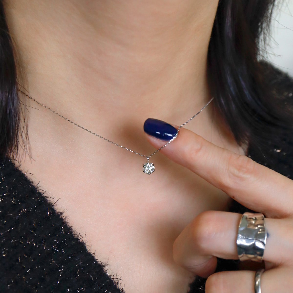 0.4ctの一粒ダイヤモンドを主役にした、しっかりとダイヤの存在感を感じられるネックレス。