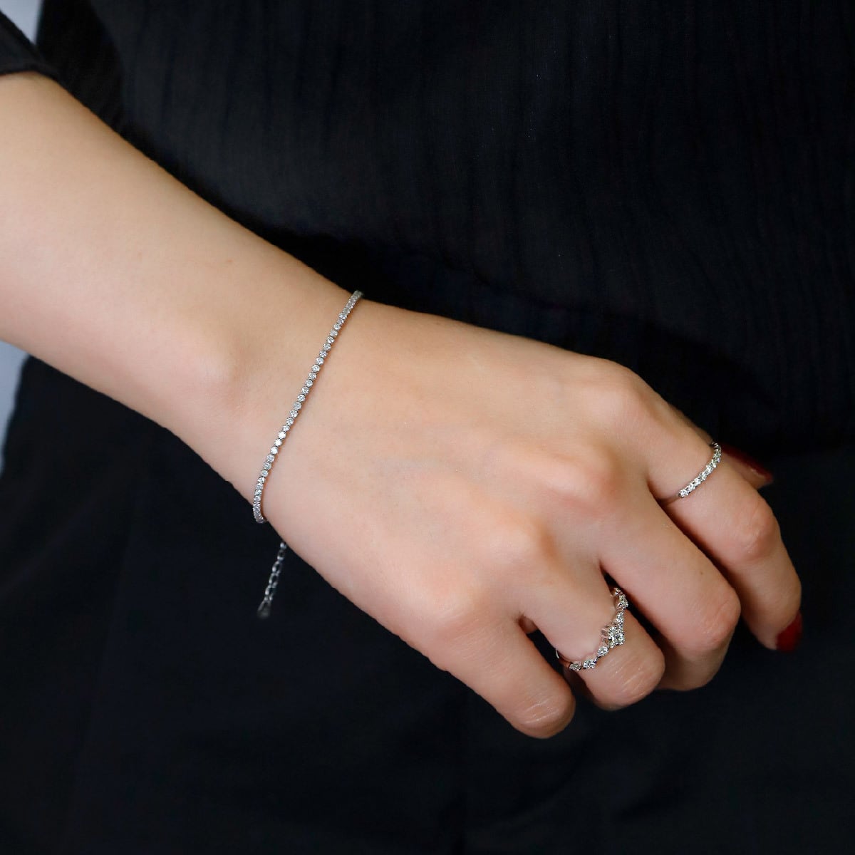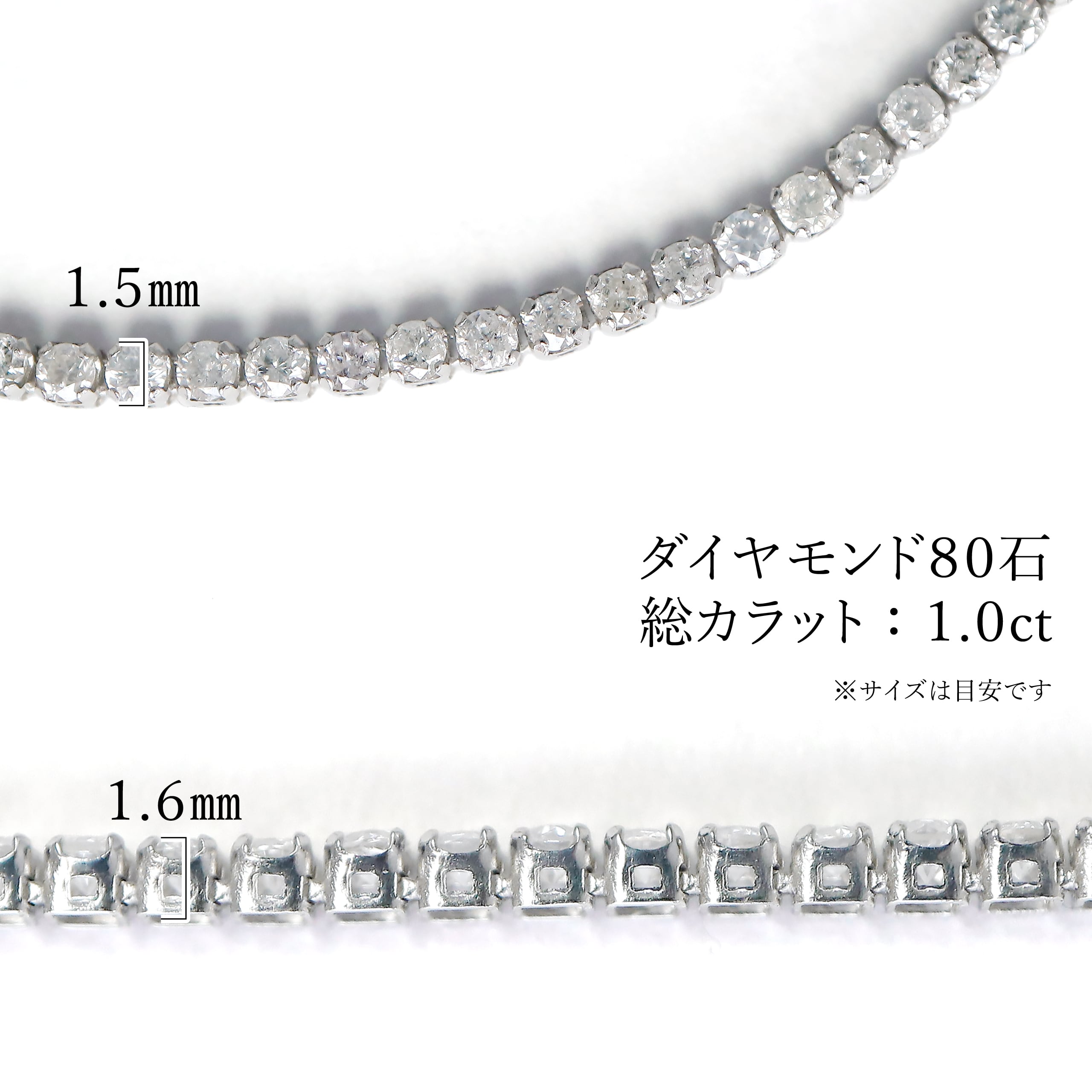 総カラット1.0ctのダイヤモンドを連ねた、テニスブレスレット。